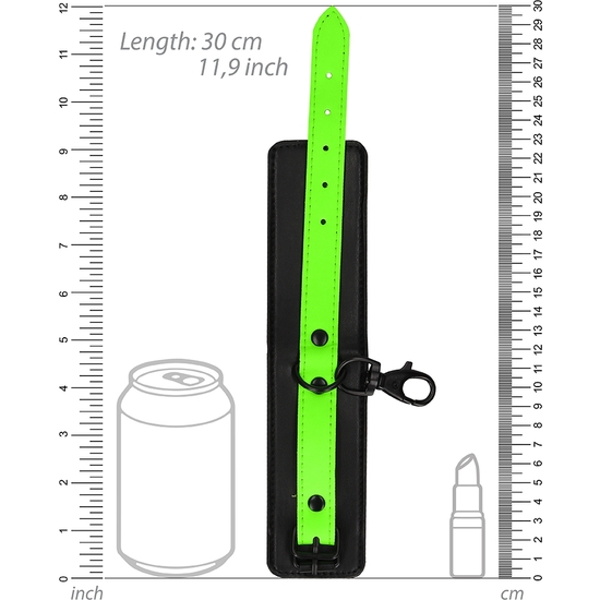 Ouch! Brillo en la oscuridad, el futuro del bondage ha llegado. Diseñado con una auténtica estética bondage, pero con el encanto añadido de las propiedades que brillan en la oscuridad, los detalles en verde fluorescente convertirán cualquier evento en una fiesta.